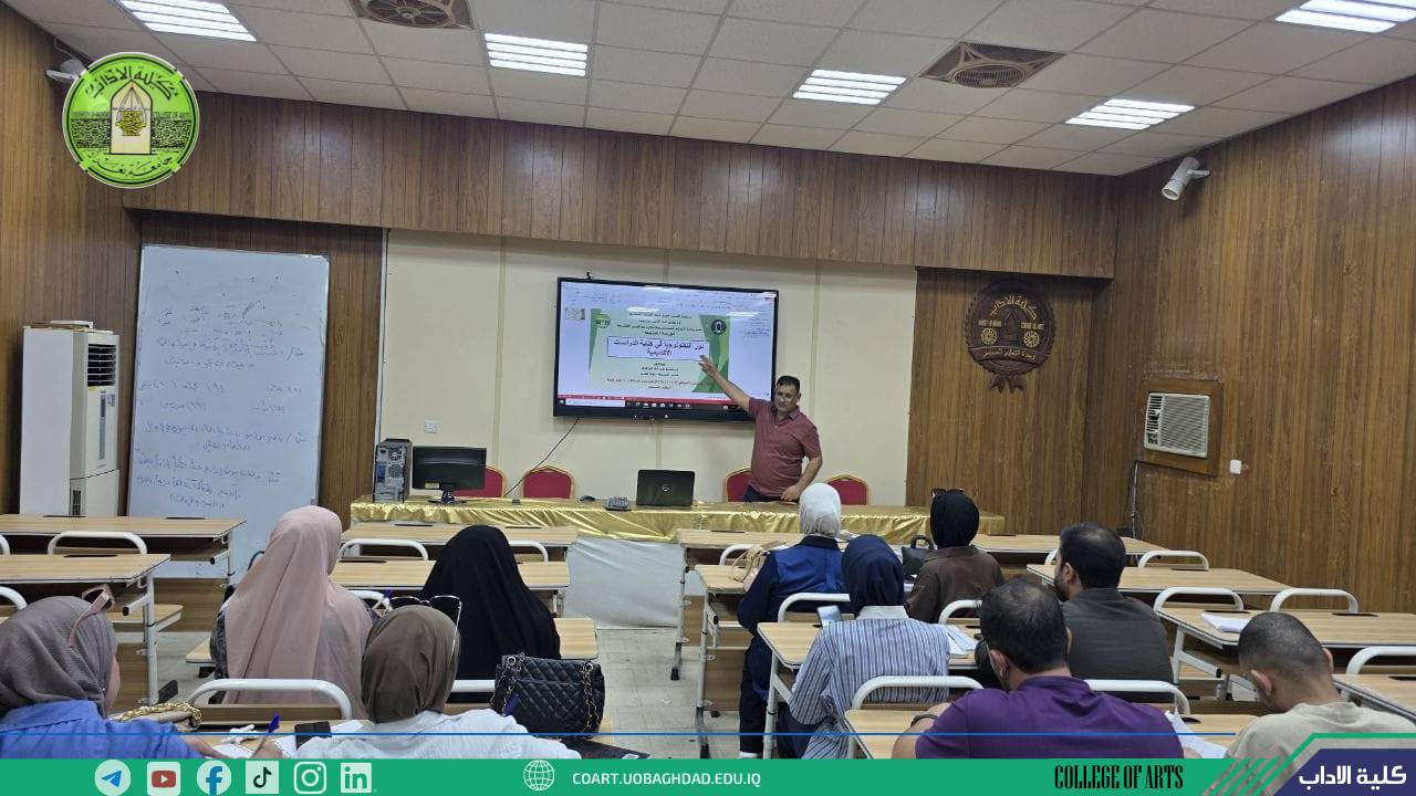برعاية السيد عميد كلية الآداب – جامعة بغداد الأستاذ الدكتور علي عبد الأمير ساجت، وضمن إطار تنفيذ محاور الخطة الاستراتيجية للتربية والتعليم، نظّمت وحدة التعليم المستمر بالتعاون مع قسم الفلسفة في كلية الآداب – جامعة بغداد، يوم الأحد الموافق ٩ تشرين الاول ٢٠٢٥، ورشةً تدريبية بعنوان: “دور التكنولوجيا في كتابة الدراسات الأكاديمية”.