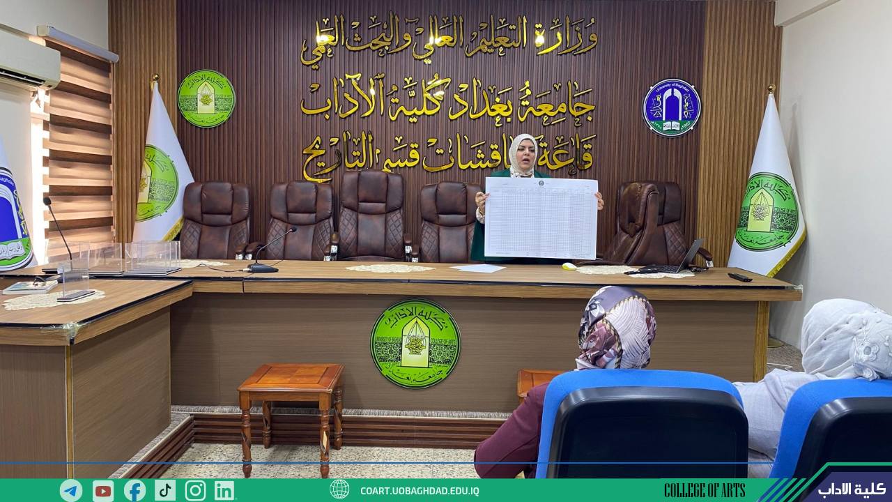 قدّمتها الدكتورة هالة عبد الأمير محسن، وبحضور عدد من أساتذة قسم التاريخ وطلبة وموظفي الكلية.