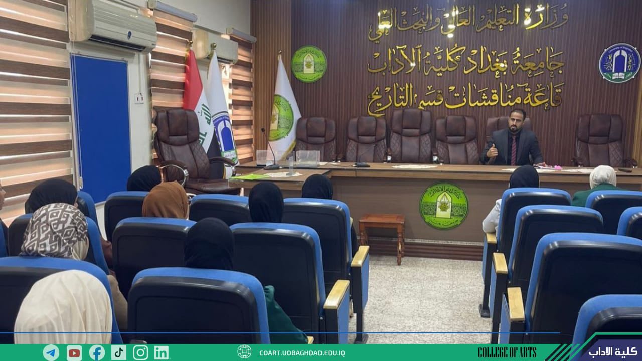 برعاية السيد عميد كلية الآداب- جامعة بغداد الأستاذ الدكتور علي عبد الأمير ساجت المحترم، وضمن إطار تنفيذ محاور الخطة الاستراتيجية للتربية والتعليم، واستراتيجية الأمن الوطني، نظّمت وحدة التعليم المستمر بالتعاون مع قسم التاريخ في كلية الآداب، يوم الأحد الموافق ١٢ تشرين الاول ٢٠٢٥، ورشةً تدريبية بعنوان: