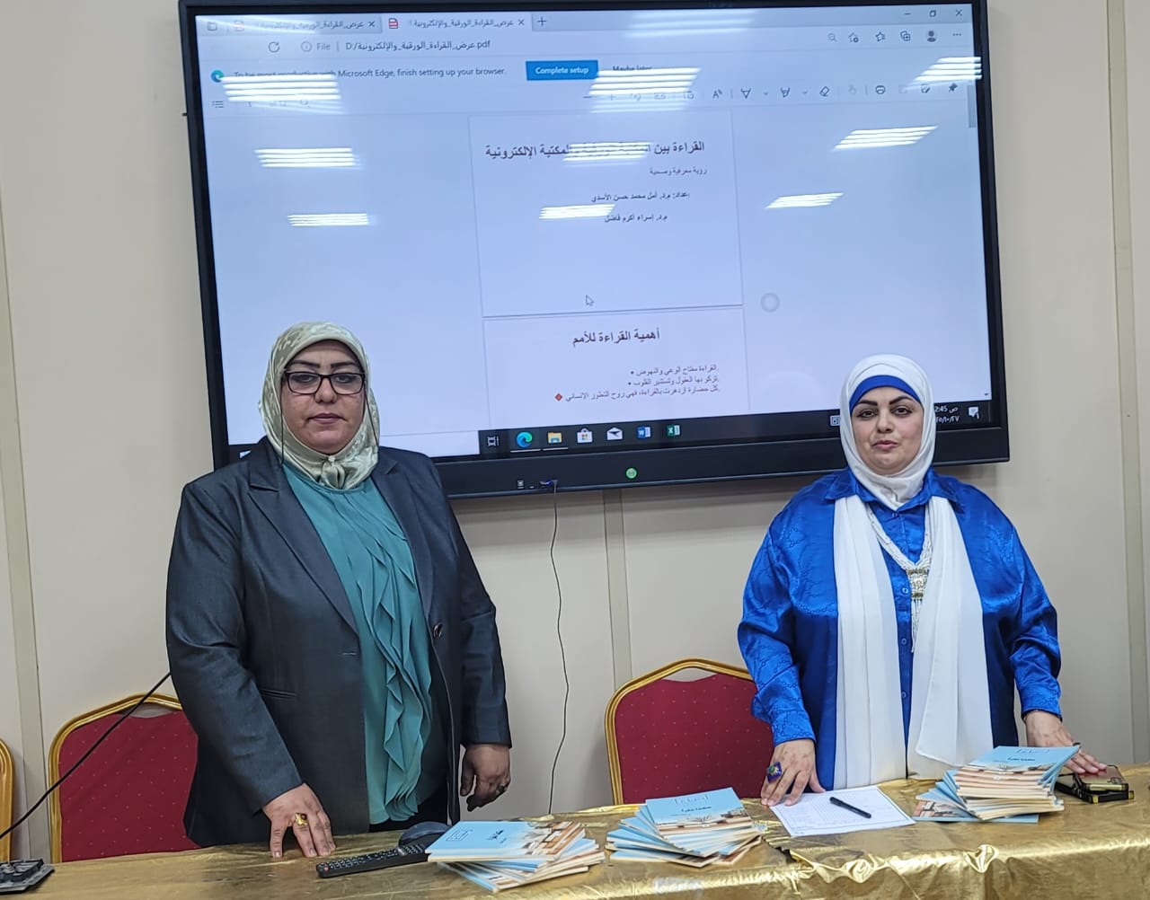 م.د. أمل محمد حسن الأسديّ (قسم اللغة العربيَّة)، وم.د. إسراء أكرم فاضل (مديرة وحدةالتعليمِ المستمر)، بحضور عدد من الاساتذة والموظفين.